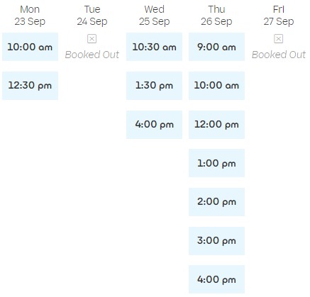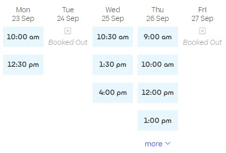 Helpful Tip: If you click ‘more’ with the blue arrow, it will expand available times.